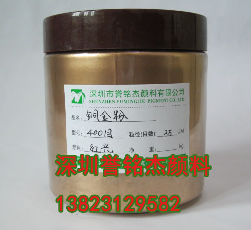 400目 铜金粉:飞金、金漆、织物印金,也适用于丝网印刷、墙纸、涂料和并入塑料之中。特点:光度高,金属感强。